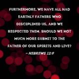 Furthermore, we have all had earthly fathers who disciplined us, and we respected them. Should we not much more submit to the Father of our spirits and live?
