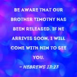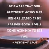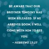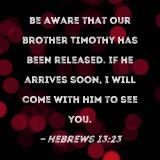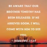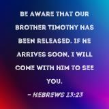Be aware that our brother Timothy has been released. If he arrives soon, I will come with him to see you.
