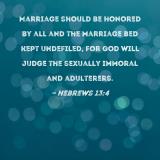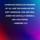 Marriage should be honored by all and the marriage bed kept undefiled, for God will judge the sexually immoral and adulterers.
