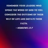 Remember your leaders who spoke the word of God to you. Consider the outcome of their way of life and imitate their faith.