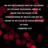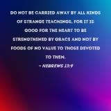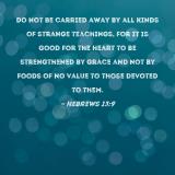 Do not be carried away by all kinds of strange teachings, for it is good for the heart to be strengthened by grace and not by foods of no value to those devoted to them.