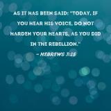 As it has been said: "Today, if you hear His voice, do not harden your hearts, as you did in the rebellion."