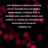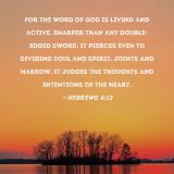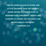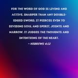 For the word of God is living and active. Sharper than any double-edged sword, it pierces even to dividing soul and spirit, joints and marrow. It judges the thoughts and intentions of the heart.