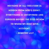 Nothing in all creation is hidden from God's sight; everything is uncovered and exposed before the eyes of Him to whom we must give account.