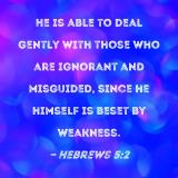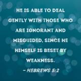 He is able to deal gently with those who are ignorant and misguided, since he himself is beset by weakness.