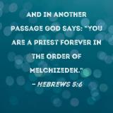 And in another passage God says: "You are a priest forever in the order of Melchizedek."
