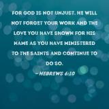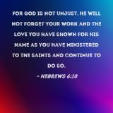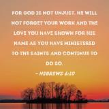 For God is not unjust. He will not forget your work and the love you have shown for His name as you have ministered to the saints and continue to do so.