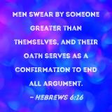 Men swear by someone greater than themselves, and their oath serves as a confirmation to end all argument.