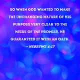 So when God wanted to make the unchanging nature of His purpose very clear to the heirs of the promise, He guaranteed it with an oath.