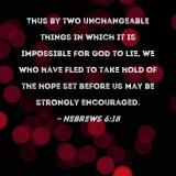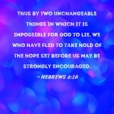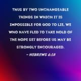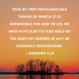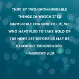 Thus by two unchangeable things in which it is impossible for God to lie, we who have fled to take hold of the hope set before us may be strongly encouraged.