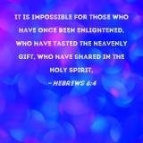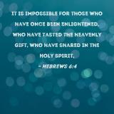 It is impossible for those who have once been enlightened, who have tasted the heavenly gift, who have shared in the Holy Spirit,