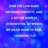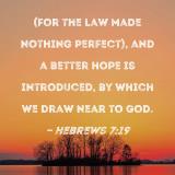 (for the law made nothing perfect), and a better hope is introduced, by which we draw near to God.