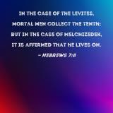In the case of the Levites, mortal men collect the tenth; but in the case of Melchizedek, it is affirmed that he lives on.