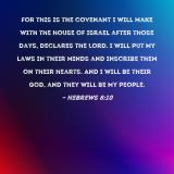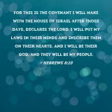 For this is the covenant I will make with the house of Israel after those days, declares the Lord. I will put My laws in their minds and inscribe them on their hearts. And I will be their God, and they will be My people.