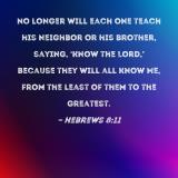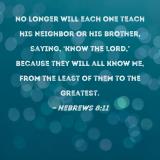 No longer will each one teach his neighbor or his brother, saying, 'Know the Lord,' because they will all know Me, from the least of them to the greatest.