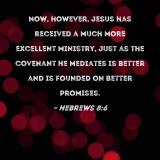 Now, however, Jesus has received a much more excellent ministry, just as the covenant He mediates is better and is founded on better promises.