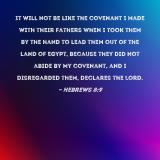 It will not be like the covenant I made with their fathers when I took them by the hand to lead them out of the land of Egypt, because they did not abide by My covenant, and I disregarded them, declares the Lord.