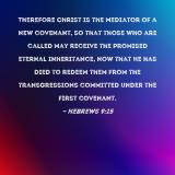 Therefore Christ is the mediator of a new covenant, so that those who are called may receive the promised eternal inheritance, now that He has died to redeem them from the transgressions committed under the first covenant.