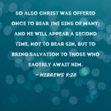 so also Christ was offered once to bear the sins of many; and He will appear a second time, not to bear sin, but to bring salvation to those who eagerly await Him.