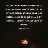 This is the word of the LORD that came to Hosea son of Beeri in the days of Uzziah, Jotham, Ahaz, and Hezekiah, kings of Judah, and of Jeroboam son of Jehoash, king of Israel.