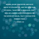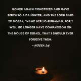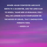 Gomer again conceived and gave birth to a daughter, and the LORD said to Hosea, "Name her Lo-ruhamah, for I will no longer have compassion on the house of Israel, that I should ever forgive them.