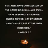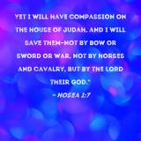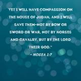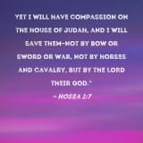 Yet I will have compassion on the house of Judah, and I will save them--not by bow or sword or war, not by horses and cavalry, but by the LORD their God."