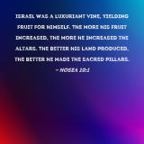 Israel was a luxuriant vine, yielding fruit for himself. The more his fruit increased, the more he increased the altars. The better his land produced, the better he made the sacred pillars.