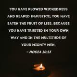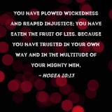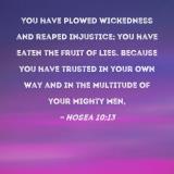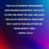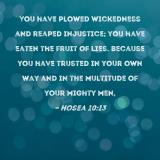 You have plowed wickedness and reaped injustice; you have eaten the fruit of lies. Because you have trusted in your own way and in the multitude of your mighty men,