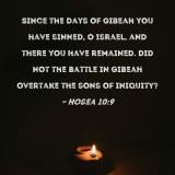 Since the days of Gibeah you have sinned, O Israel, and there you have remained. Did not the battle in Gibeah overtake the sons of iniquity?