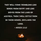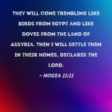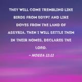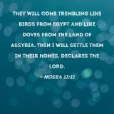 They will come trembling like birds from Egypt and like doves from the land of Assyria. Then I will settle them in their homes, declares the LORD.