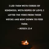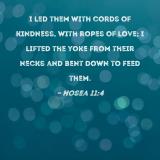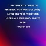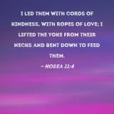 I led them with cords of kindness, with ropes of love; I lifted the yoke from their necks and bent down to feed them.