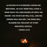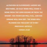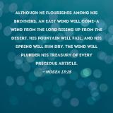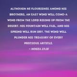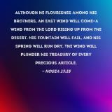 Although he flourishes among his brothers, an east wind will come--a wind from the LORD rising up from the desert. His fountain will fail, and his spring will run dry. The wind will plunder his treasury of every precious article.