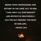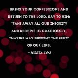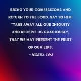 Bring your confessions and return to the LORD. Say to Him: "Take away all our iniquity and receive us graciously, that we may present the fruit of our lips.