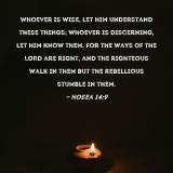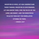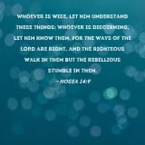 Whoever is wise, let him understand these things; whoever is discerning, let him know them. For the ways of the LORD are right, and the righteous walk in them but the rebellious stumble in them.