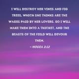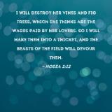 I will destroy her vines and fig trees, which she thinks are the wages paid by her lovers. So I will make them into a thicket, and the beasts of the field will devour them.