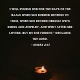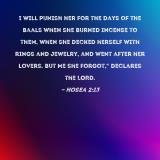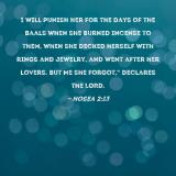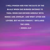 I will punish her for the days of the Baals when she burned incense to them, when she decked herself with rings and jewelry, and went after her lovers. But Me she forgot," declares the LORD.