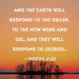 And the earth will respond to the grain, to the new wine and oil, and they will respond to Jezreel.