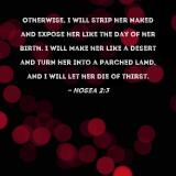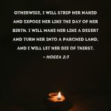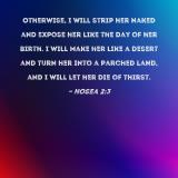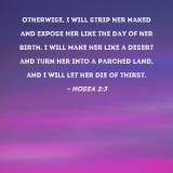 Otherwise, I will strip her naked and expose her like the day of her birth. I will make her like a desert and turn her into a parched land, and I will let her die of thirst.