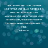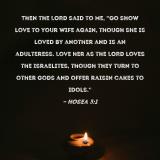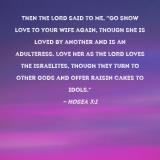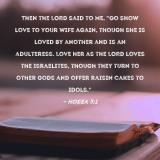Then the LORD said to me, "Go show love to your wife again, though she is loved by another and is an adulteress. Love her as the LORD loves the Israelites, though they turn to other gods and offer raisin cakes to idols."