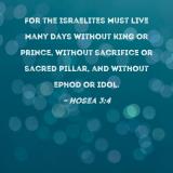 For the Israelites must live many days without king or prince, without sacrifice or sacred pillar, and without ephod or idol.