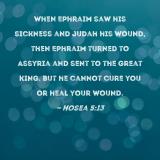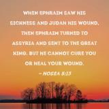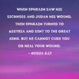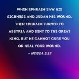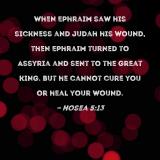 When Ephraim saw his sickness and Judah his wound, then Ephraim turned to Assyria and sent to the great king. But he cannot cure you or heal your wound.