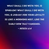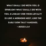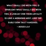 What shall I do with you, O Ephraim? What shall I do with you, O Judah? For your loyalty is like a morning mist, like the early dew that vanishes.