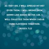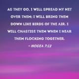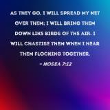 As they go, I will spread My net over them; I will bring them down like birds of the air. I will chastise them when I hear them flocking together.