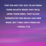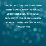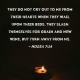 They do not cry out to Me from their hearts when they wail upon their beds. They slash themselves for grain and new wine, but turn away from Me.