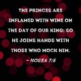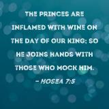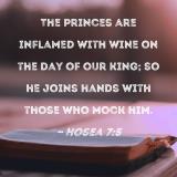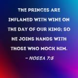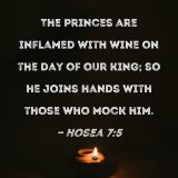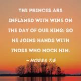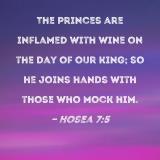 The princes are inflamed with wine on the day of our king; so he joins hands with those who mock him.