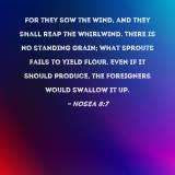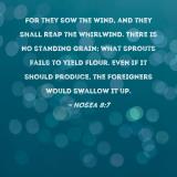 For they sow the wind, and they shall reap the whirlwind. There is no standing grain; what sprouts fails to yield flour. Even if it should produce, the foreigners would swallow it up.