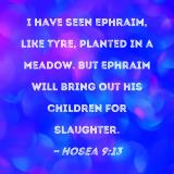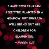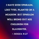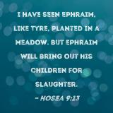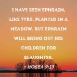 I have seen Ephraim, like Tyre, planted in a meadow. But Ephraim will bring out his children for slaughter.