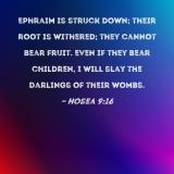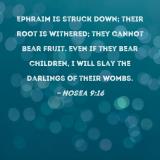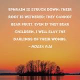 Ephraim is struck down; their root is withered; they cannot bear fruit. Even if they bear children, I will slay the darlings of their wombs.