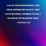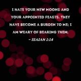 I hate your New Moons and your appointed feasts. They have become a burden to Me; I am weary of bearing them.