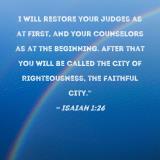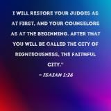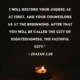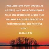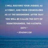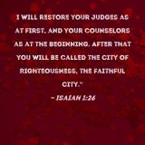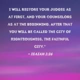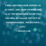 I will restore your judges as at first, and your counselors as at the beginning. After that you will be called the City of Righteousness, the Faithful City."